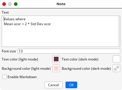 When editing a Note, there are four buttons that can be clicked to open a Color Picker.